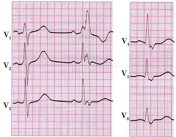Антриовентрикулярная блокада происходит вследствие снижения или отсутствия проведения импульса от предсердий к желудочкам. Развивается при ишемической болезни сердца, ревмокардите, инфаркте, при передозировке сердечных гликозидов, β-адреноблокаторов, хинидина, верапамила.