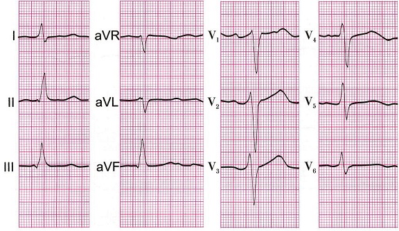 При любом варианте однопучковой блокады на кардиограмме (ЭКГ) комплекс QRS незначительно расширен, но его ширина находится в пределах верхней границы нормы или немного увеличивается (0,08 — 0,11 сек.) до 0,12 секунд.
