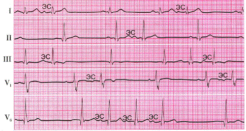 Экстрасистолия является наиболее частым нарушением сердечного ритма. Патология развивается из-за появления активного гетеротопного очага, способного генерировать электрический импульс перебивающий работу синусового узла. Проявляется внеочередным возбуждением и последующим сокращением отделов сердца или его целиком.