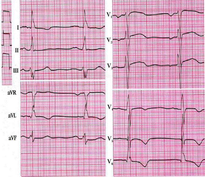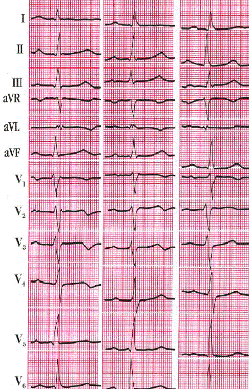 Лучше всего данные электрокардиографические сдвиги определяются в грудных отведениях. Сопутствующей патологией выступает нарушение ритма и проводимости.