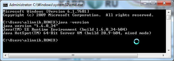 Если возвращается строка, что установлена версия 1.7, то нужно установить корректную версию 1.6 и сделать эту версию основной активной.