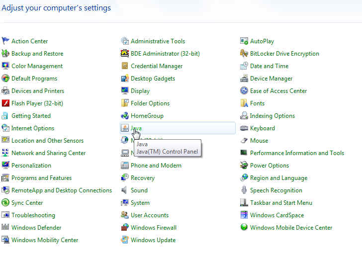 Открыть "Панель управления" компьютера и открыть иконку Java.