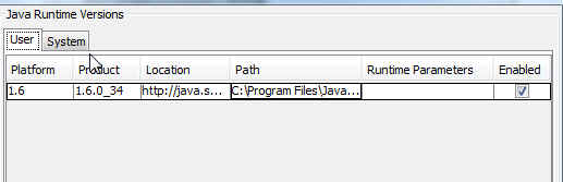 На этой форме на обоих закладках "User" и "System" сделать активной версию Java 1.6