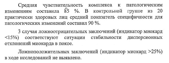 В качестве системы формирования заключения в новом устройстве КардиРу используется хорошо зарекомендовавшая себя система заключения Кардиовизора. В исследованиях и клинических испытаниях данной системы участвовало более 5500 пациентов, из них около одной тысячи условно здоровых лиц в контрольных группах. Отдельно следует отметить, что в 5 случаях проводились скрининговые верификационные исследования, в которых участвовало около 8000 человек и в которых клинической верификации подвергались только случаи выявленных отклонений.